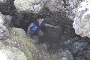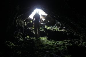 Next, lava tubes! We had the area to ourselves, as there were no signs about them, despite several coaches full of tourists stopping 300 m away to climb the cinder cone. We explored and found five tubes of varying sizes to go inside. Top tip: never go anywhere volcanic without your head torch. This was my favourite, the entrance was so narrow we nearly didnt bother, but once I wriggled through the gap, the tunnel was huge inside.